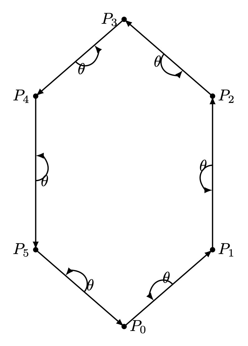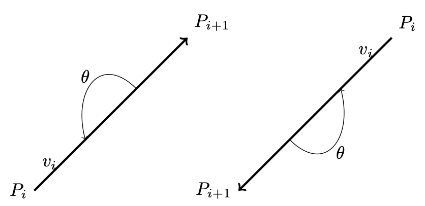 For example, as shown in Fig. 20, \(\Theta\) is the angle from \(P_iP_{i+1}\) to \(P_iP'_{i+1} = 180^\circ\).