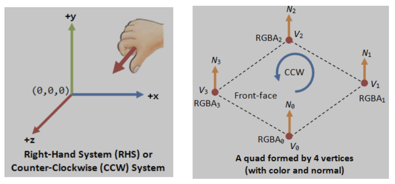 Both triangles and quads are polygons. So, objects can be formed with polygons in both 2D and 3D. The transformation in 2D or 3D is well covered in almost every computer graphics book. This section introduces the most important concept and method for determining inner and outer planes. Then, a point or object can be checked for visibility during 2D or 3D rendering.