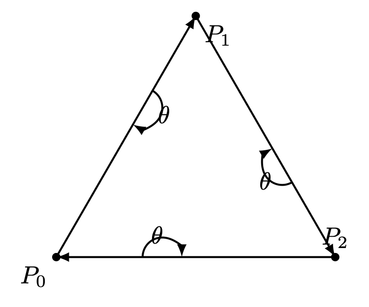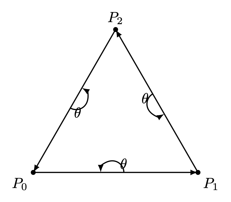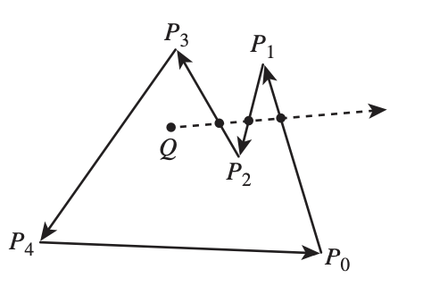 A polygon can be created from a set of vertices. Suppose \((P_0, P_1, ..., P_n)\) defines a polygon. The line segments \(P_0P_1, P_1P_2\), etc., are the polygon’s edges. The vectors \(v_0 = P_1 - P_0, v_1 = P_2 - P_1, ..., v_n = P_0 - P_n\) represent those edges.
