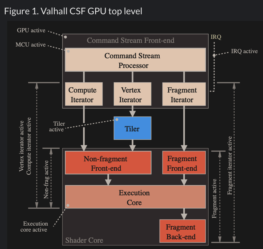 Fig. 7 MCU and specific HW circuits to speedup the processing of CSF (Command Stream Fronted) [5].¶